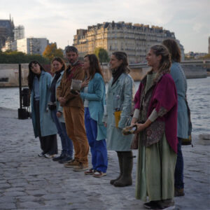 Gwennaëlle Roulleau, créatrice sonore / Myriam Drosne, photographe et plasticienne textile / Manon Gignoux, plasticienne costumière / Françoise Bachelard, performeuse / Gerry Quévreux, performeur / Stéphane Couturas, performeur / Olivia Caillaud, performeuse / Ghislaine Louveau, performeuse / Romain Vallée, réalisateur, vidéaste et cadreur / Benoît Poulain, luthier, musicient et compositeur / Sika, chanteuse / Pablo Schatzman, musicien / Laurent Géhant, musicien / Véronique Durand, chercheuse / Sébastien Leblond, chercheur / Caroline Meyer, chercheuse / Christine Rollard, chercheuse et enseignante / Christine Coutris, écrivaine / Julie Mondor, musicienne performeuse / Isabel Claus, paysagiste / Olivier Weller, archéologue INRAP / Michaël Jasmin, archéologue / Gilles Paté, artiste plasticien, enseignant à l’école d’architecture de Versailles / Sarah Simon, plasticienne.